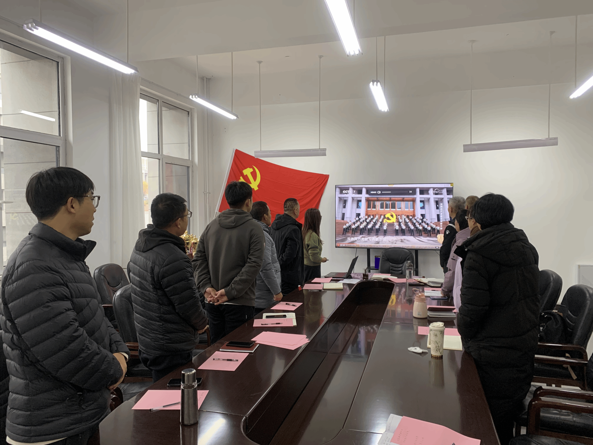 活动最后进入“同心筑梦·担使命”篇章。全体起立,齐声高唱《没有共产党就没有新中国》。激昂的旋律、嘹亮的歌声,将活动气氛推向高潮,充分抒发了全体党员对党和国家的热爱之情,进一步凝聚了共识,激发了大家将廉洁修身与“体育强国”、“教育强国”战略相结合,在本职岗位上担当作为、贡献力量,为实现中华民族伟大复兴中国梦而努力奋斗的坚定决心。