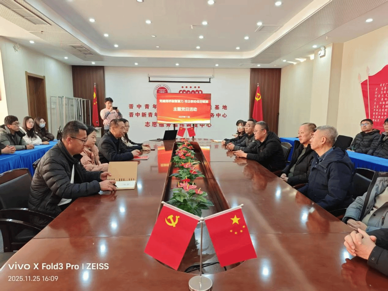 活动开始,党员队伍实地参观了企业多个功能区域:在“北斗红星・晋中新青年志愿服务”展示墙前,了解企业联动青年群体的服务实践成果;驻足园区规划模型展区,清晰企业产业布局与发展蓝图;走进低空经济及无人机技术展示区,近距离观摩无人机设备、学习低空经济产业进展,同时梳理了学院与企业在专业实践、技术协同方面的合作切入点。