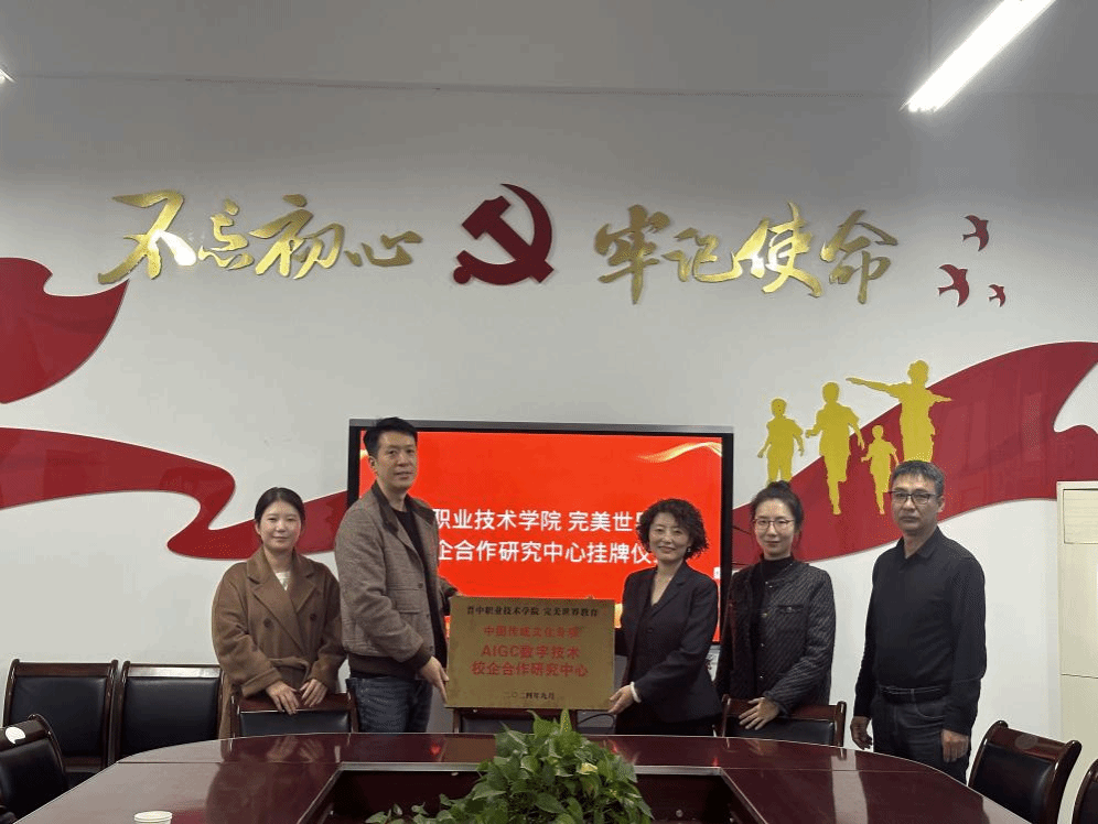 在随后的交流环节,双方围绕数字媒体技术专业建设、校企交流、企业的横向课题等方面进行了深入的探讨。完美世界教育山西校企合作负责人李爱红介绍了完美世界教育在数字媒体技术领域的项目经验和资源优势,并表示愿意与学院共同开展横向课题研究,推动科研成果的转化和应用。会上,双方还就校企研究中心的建设进行了讨论。系主任表示,校企研究中心将作为双方合作的重要平台,通过开展技术研发、项目孵化、人才培养、师资培训等活动,推动数字媒体技术专业的创新和发展。在签约仪式的最后,双方举行了授牌仪式。