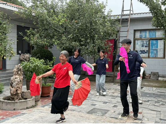 在非遗传承现场,青春与传统的碰撞更显“你我同行”的活力。西安村的院子里,身着红衣的老奶奶挥舞红扇,演绎小花戏的灵动;队员们手持扇子认真模仿,虽显青涩,却满是对非遗的敬畏与热爱。这不是简单的模仿,是青年与非遗传承人的“对话”——队员们用年轻人的视角理解传统,用电子技术拍摄教学视频、制作数字档案,让“小花戏”在“守正创新”中焕发新活力。而这份守护,需要更多人参与,无论是传承技艺的老人,还是创新传播的青年,都是乡村文化的守护者。