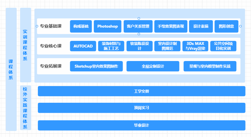 室内艺术设计专业前身是图形图像制作专业,在2016年更名为室内艺术设计。2008年到2024年室内艺术专业已经有16年的发展沉淀。本专业拥有一支经验丰富的强大专业师资团队,目前在校人数416人,专业班级14个。历年来我们以提高专业人才培养质量和提升服务地方经济发展能力为基本目标。在人才培养模式、课程体系建设、师资队伍建设、实习实训等方面进行改革提升。室内艺术设计专业于2012被评为院级特色专业、2014年底获批建设省级重点实训基地、2017年山西省高等职业教育创新发展行动计划中被确认为省级骨干专业项目建设单位,并成功入选国家级骨干专业项目。