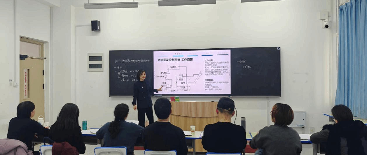 教学能手组,院教指委委员王亚辉领衔评委组。深耕教学一线的参赛教师们各展其长,凭借丰富的教学经验、成熟的教学体系,在课堂中从容把控节奏,将前沿教学理念与学科特色深度融合,尽显骨干教师的深厚教学功底。文化艺术系赵璐以形体训练为核心,聚焦胶州秧歌正丁字拧步关键技法,动作示范标准到位,讲解细致入微,将动作要领与民族舞蹈韵味相结合,让课堂兼具专业性与艺术性,充分展现了艺术学科教学的独特魅力;车辆工程系徐燕茹深耕汽车专业教学,以汽车发动机机械系统为授课核心,围绕汽车排放净化装置-EVAP燃油箱蒸发系统展开细致讲解,将复杂的机械原理拆解为通俗易懂的知识点,辅以清晰的结构图示与逻辑梳理,精准传递专业核心内容,尽显工科教学的严谨精准与务实高效,精彩表现获得评委与观摩教师的广泛好评。