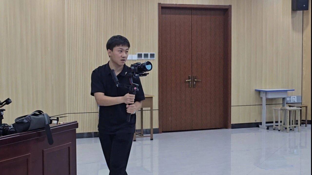 培训过程中,两位讲师围绕无人机和单反相机的使用与实操展开讲解,内容干货满满,既覆盖理论要点,更注重实操落地。在无人机操作教学环节,文小宁从遥控器校准等基础步骤讲起,通过拆解校园航拍、建筑群全景、“云逛晋职”视频等真实案例,细致讲解了无人机拍摄角度、参数设置、运镜技巧、航线规划、构图技巧、高低悬停等关键操作。张效铭聚焦校园宣传实操技能,从案例入手,逐一讲解了脚本写作、构图技巧、相机档位选择、光线运用、镜头组接技巧、素材运用等方面,帮助学生直观感受专业拍摄的思路与技巧,提升用单反相机记录校园生活、传播校园声音的能力。