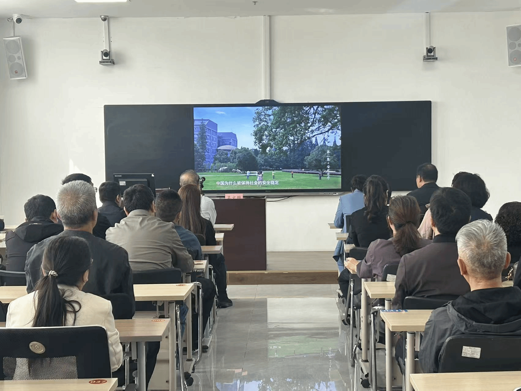 2025年4月15日是第十个全民国家安全教育日,为深入学习习近平总书记关于总体国家安全观的重要论述精神,全面践行总体国家安全观,切实增强学院职工的国家安全意识,院党委组织学院正科以上人员在继续教育学院206会议室,集中观看《国安天下安》专题宣传片。