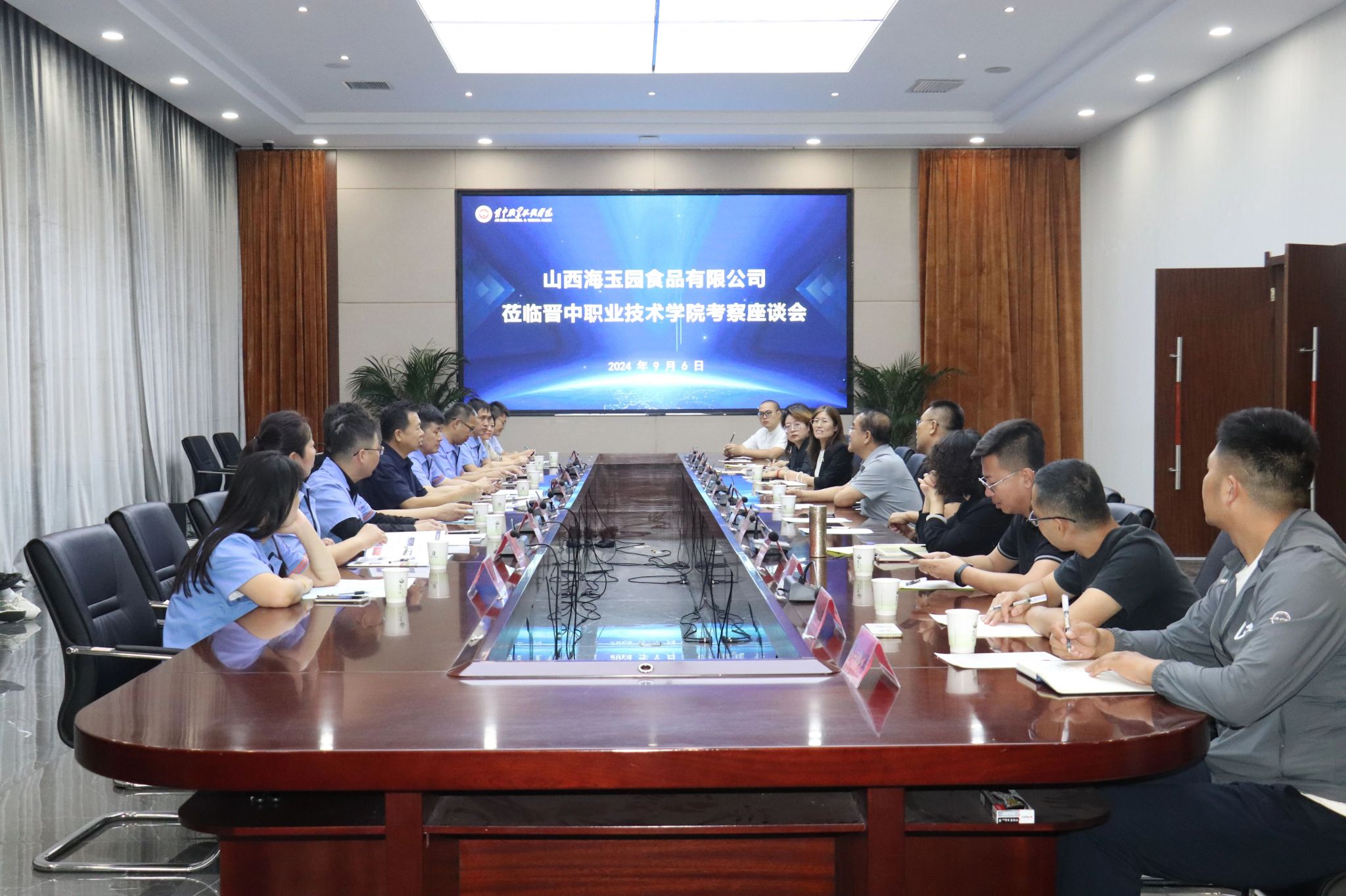 2024年9月6日,山西海玉园食品有限公司董事长张文海、全国营销总监马邵军、电商负责人张琛敏等一行8人,到我院参观考察,学院党委书记及相关领导陪同,实地参观考察了学院烘培实训基地、电商直播基地、智能制造产教融合实训基地、青年创新创业学院。
