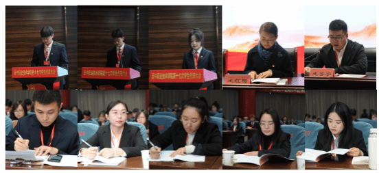 会议上,第十六届学生会代表高睿、张紫巽分别向大会作《第十六届学生会委员会工作报告》和《第十六次学代会提案落实及第十七次学代会提案征集情况报告》。全体代表审议通过了以上报告,并表决通过了大会选举办法(草案)、监票人和计票人建议名单和候选人建议名单。