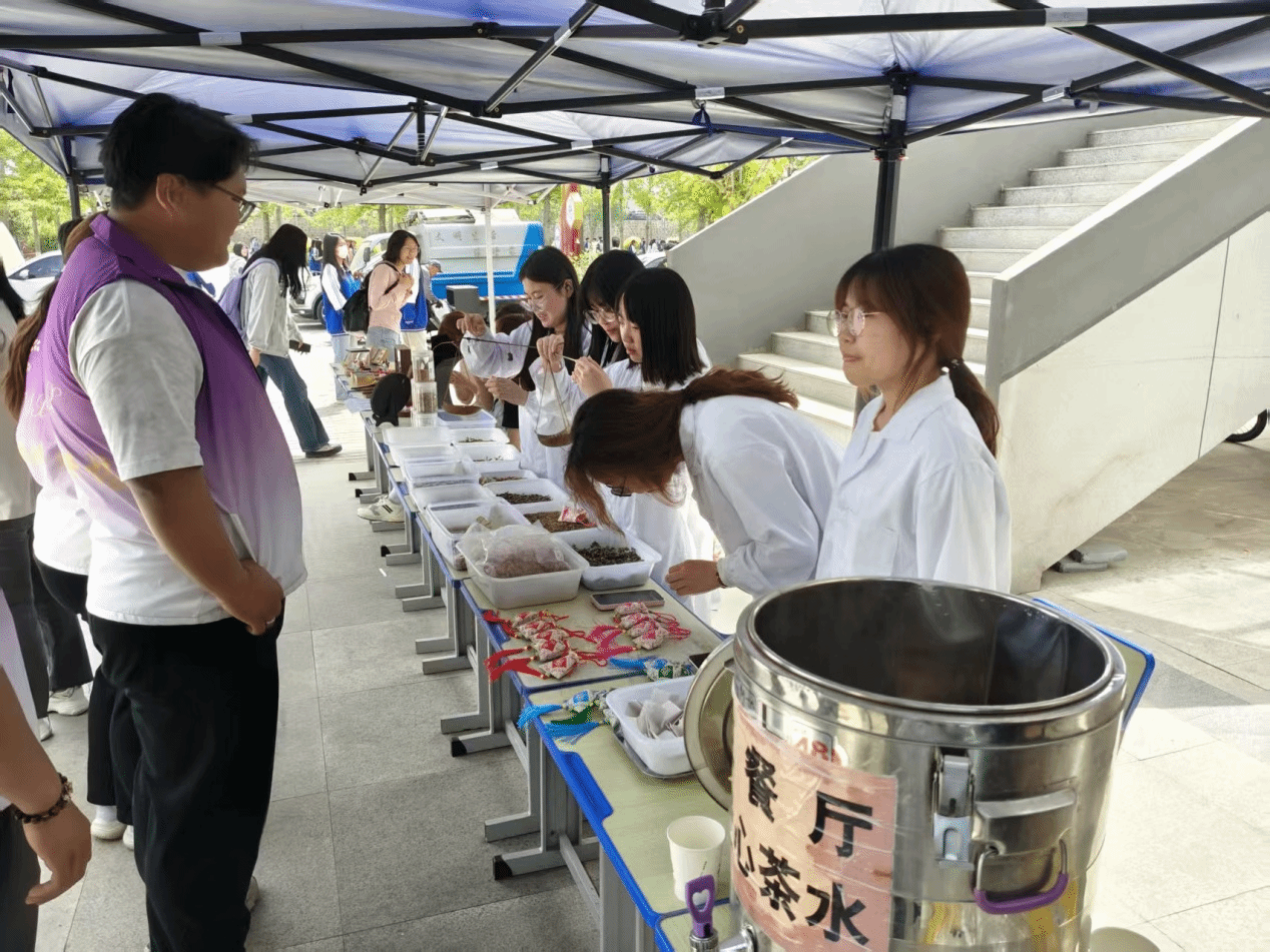 在生物工程系A楼前,一场中医药文化与非遗技艺的盛宴精彩上演。李敏老师带领学生开展中药养生茶、香囊制作活动,为现场师生呈上暖心茶饮。中医药知识小问答环节更是妙趣横生,师生们在轻松愉快的氛围中学习中医药知识,领略传统医学的博大精深。