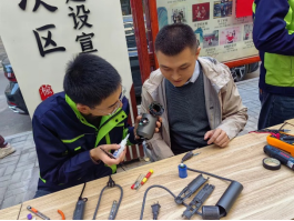师生志愿者维修小家电                            帮助居民翻新金属制品