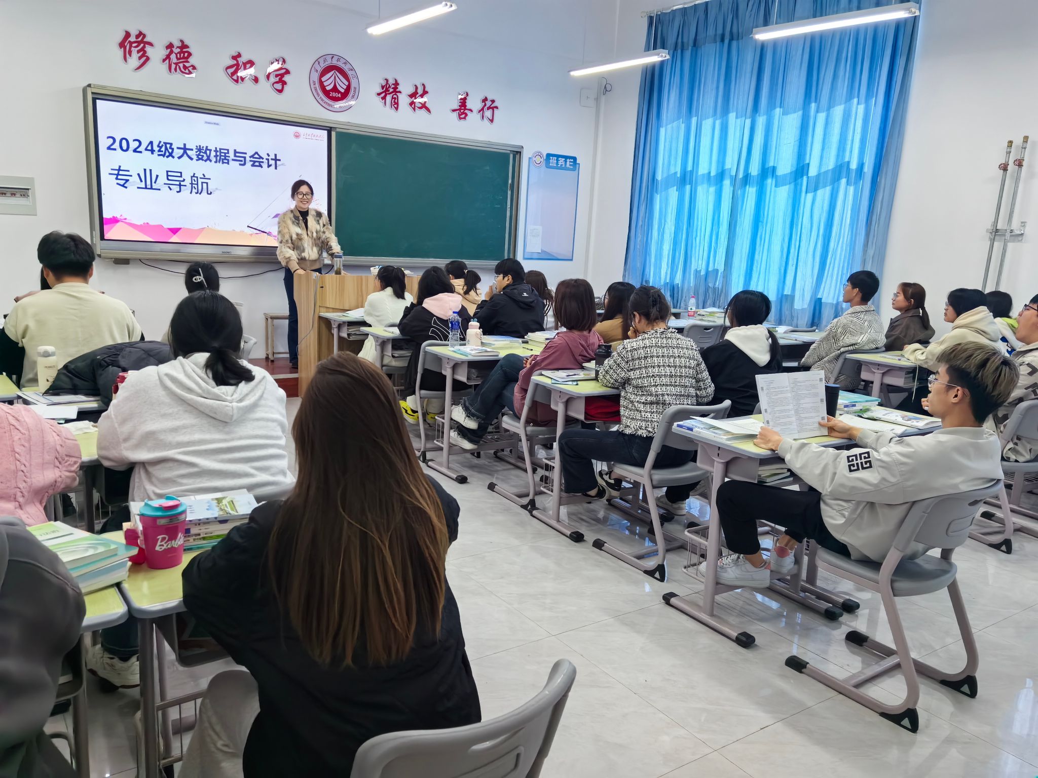大数据与会计专业负责人邓一冰针对2024级新生的专业教育包括专业背景介绍、课程设置解析、职业发展规划、互动交流等。财务分析师、大数据分析师和审计与风险管理是毕业生的主要职业方向。她鼓励新生们积极参与实习项目,积累实践经验,不断提升自身综合素质。在互动交流环节,新生们踊跃提问,针对专业学习、课程安排、职业规划等方面的问题,与老师进行了深入交流。通过互动交流,新生们对专业有了更清晰的认识,明确了未来的学习方向。