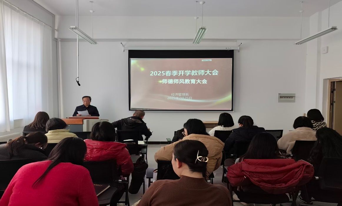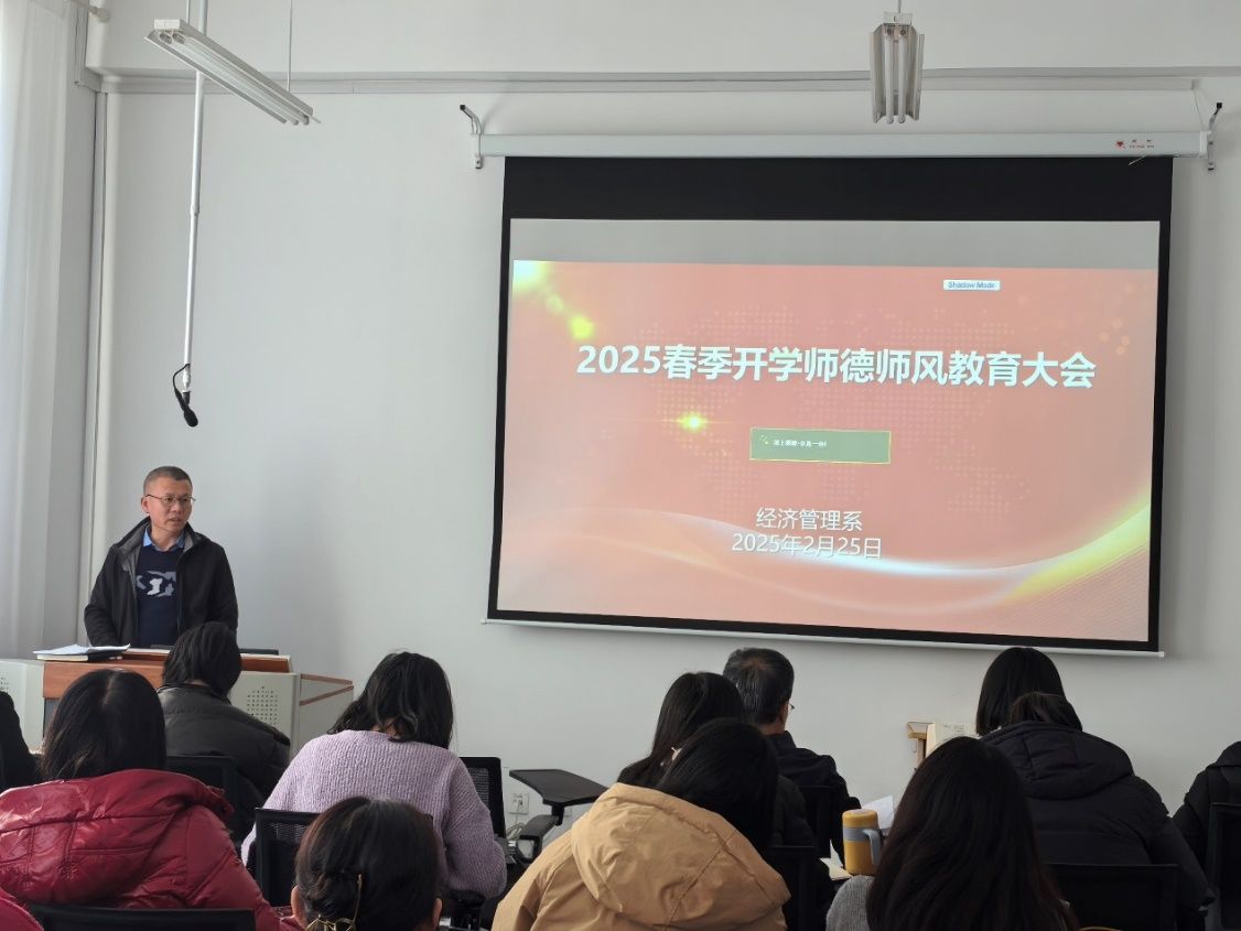 2025225日下午,经济管理系在B510会议室召开了2025年春季开学师德师风教育大会,会议由系副主任吴伟主持。系负责人宋文娟在会上向全体教师传达学习了《taptap点点官网师德师风正面清单》和《taptap点点官网师德师风负面清单》,系党总支负责人柳春涛要求全体教师认真学习学院师德师风文件精神,并按要求贯彻落实。