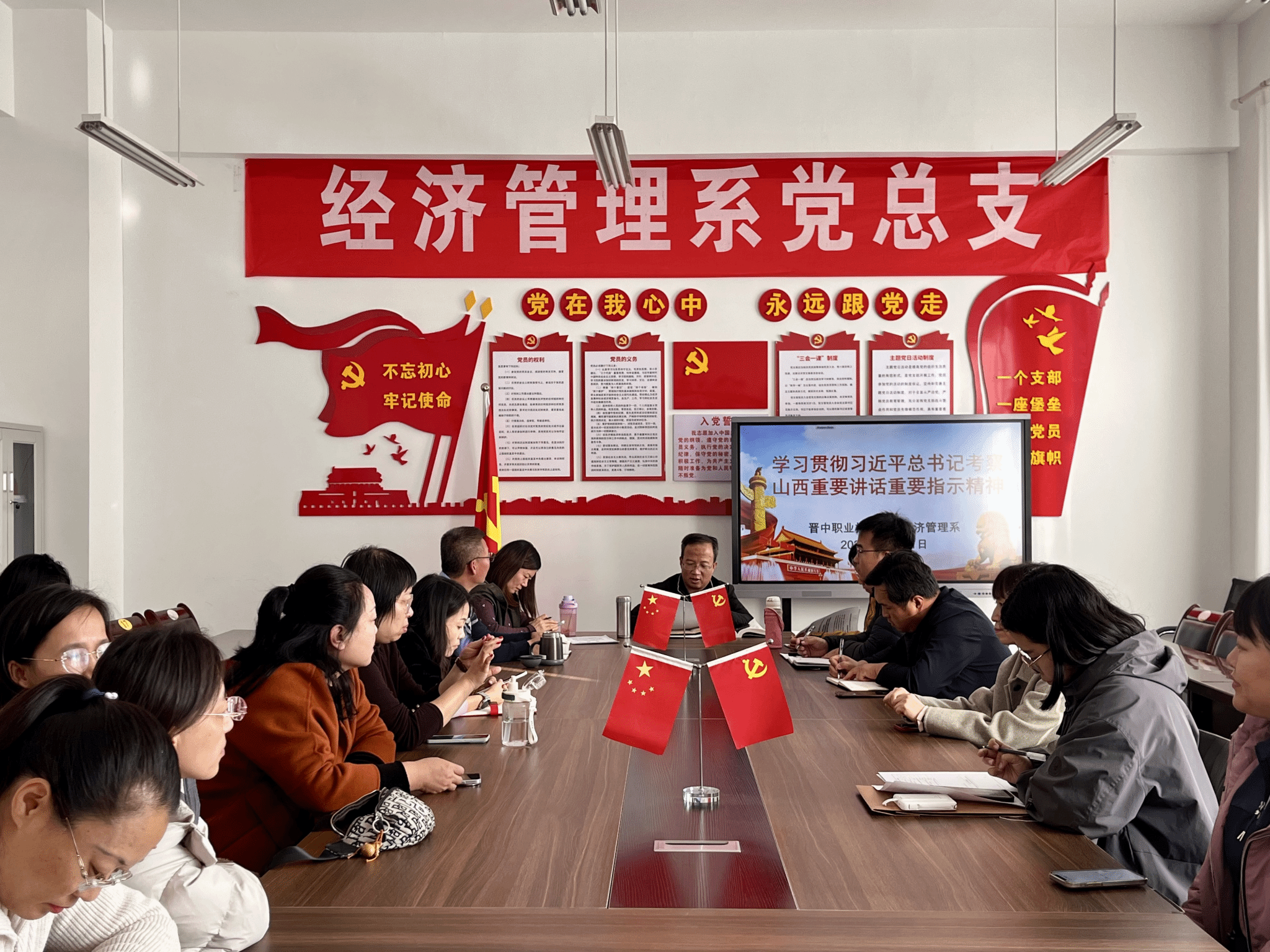 11月11日下午,经济管理系党总支组织召开专题学习会议,深入学习贯彻习近平总书记系列重要讲话精神,重点开展学习贯彻习近平总书记考察山西重要讲话重要指示精神宣讲,学习《习近平谈治国理政》第五卷相关内容,并推进落实党建工作规范提升专项行动要求。系党总支全体党员参加会议,会议由党总支负责人主持。