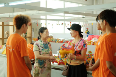 省级非遗传承人李爱萍老师(左二)讲解布艺虎制作工艺