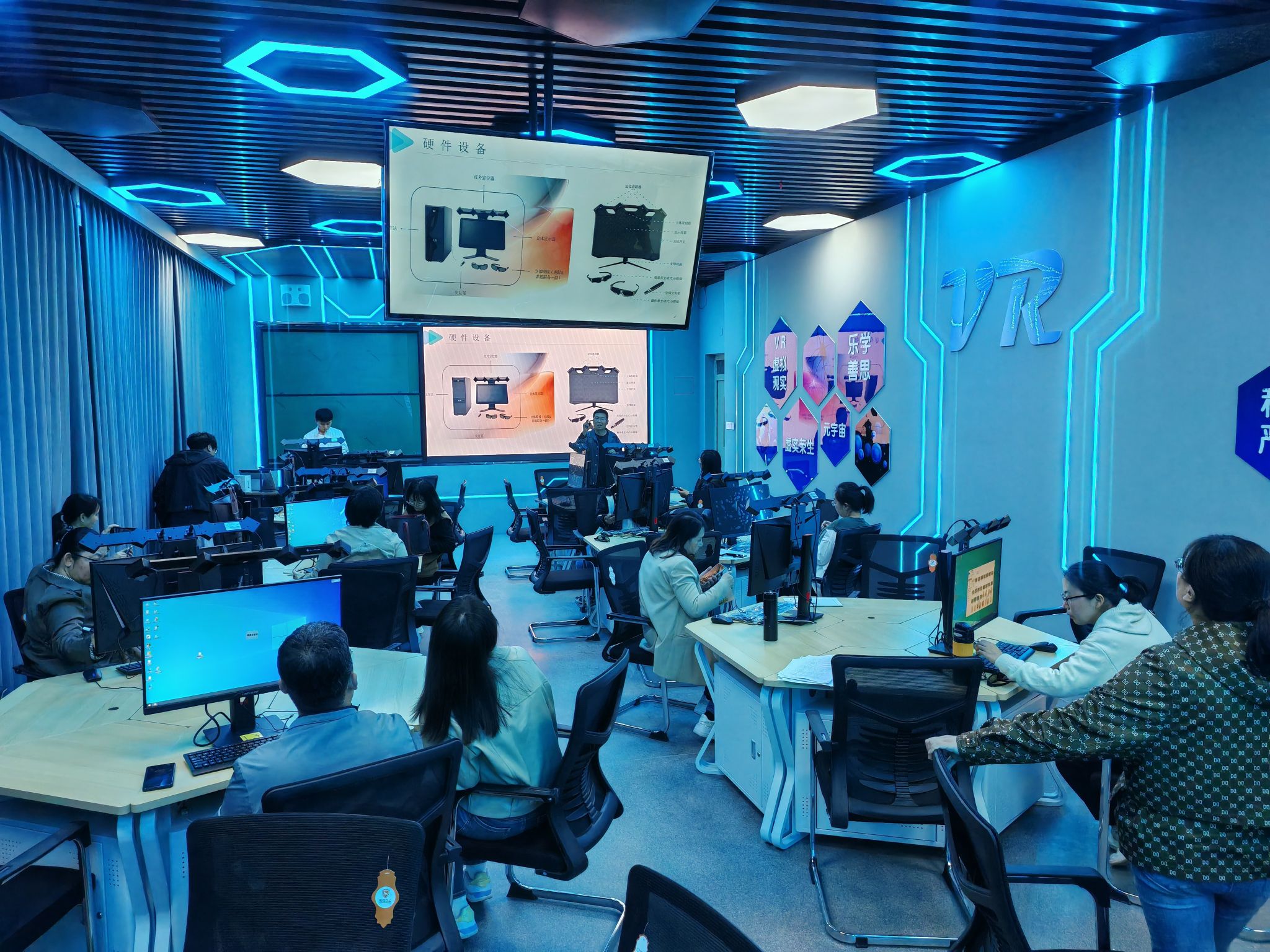 在培训活动中,技术人员详细介绍了虚拟仿真实训室的各项功能和设备操作方法。教师们积极参与,通过亲手操作和亲身体验,逐步掌握了设备的使用方法。同时,技术人员还就教师们在使用过程中遇到的问题进行了详细的解答和指导。