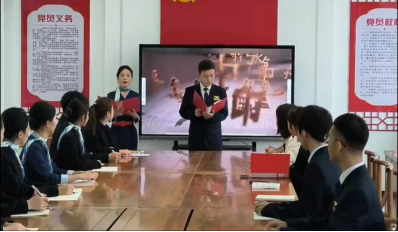 在系党总支的指导下,推普先锋队成立暨工作部署会顺利举行。会议在激昂深情的配乐诗朗诵《中国话》中拉开帷幕,该作品由荣获第七届“诵读中国”市级一等奖的张梦涛、石冰倩同学呈现,他们以饱满的情感和标准的语音,展现出青年学子卓越的语言风采,为大会营造了庄重而热烈的氛围。