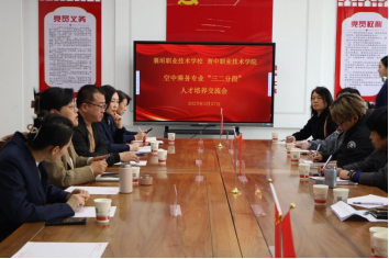 随后,襄垣职校的教师代表与空中乘务专业教师召开了“三二分段”人才培养交流会,会议由文化艺术系党总支书记主持。双方就人才培养、课程设置、实习实训等相关内容进行了深入细致地探讨,分享了各自的教学经验和心得。双方一致认为,应加强两校之间的课程衔接,避免重复教学,强化实践教学环节,提升学生实操能力,以更好地适应未来工作岗位需求。