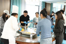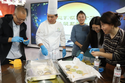 “月饼虽小,却藏着中华民族多元一体的文化密码。”在来自我系餐饮专业指导教师、三晋技术能手李恒的专业讲解下,手工制作环节拉开帷幕。师生们分组协作,揉面、包馅、压模,汉族、彝族、傣族、回族、藏族等不同民族的师生默契配合,将寓意吉祥的牡丹、石榴等纹样印在饼面。学生支部副书记同来自云南的两位少数民族同学亲切交流,来自云南的傣族学生边揉面边说:“今天和老师们一起做晋式月饼,感受了不同民族的文化,老师们的热情、同学们的友爱,让我们在千里之外的山西晋中同样也感受到了家的温暖。”